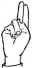 На ћирилици написано ДАНИЕЛ ТРЕБОВАЦ састоји се из 14 слова [?]. Исписано ћириличном једноручном азбуком за глувонеме: